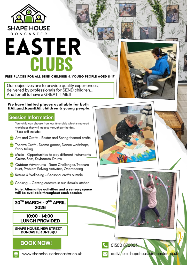 Shape House is delighted to once again provide holiday activities for children and young people with SEND in Doncaster.